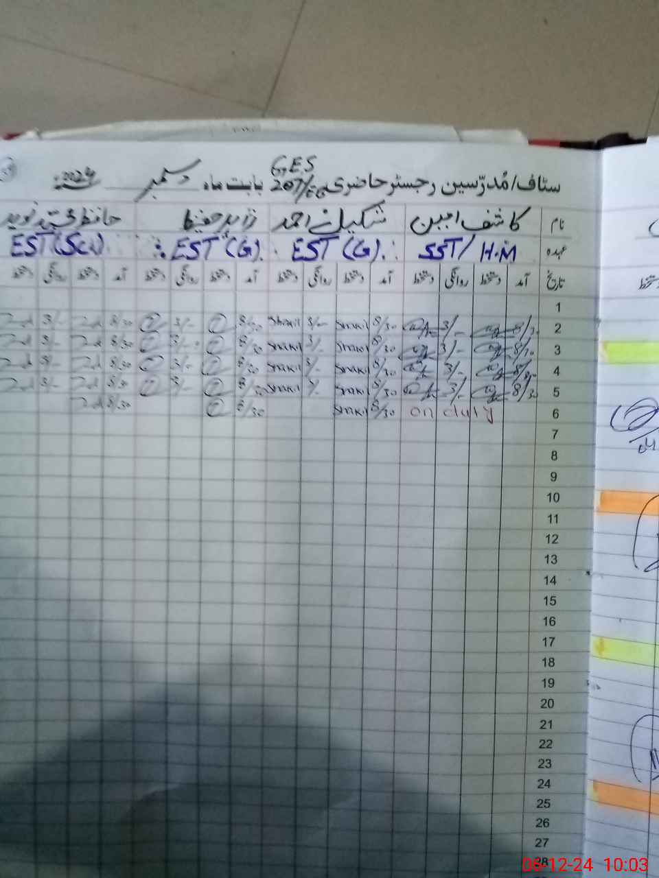| Name: SH**** AH**** Designation: (School Headmaster's/Headmistress's) EST (GEN) Phone/Cell Number: 03**** |