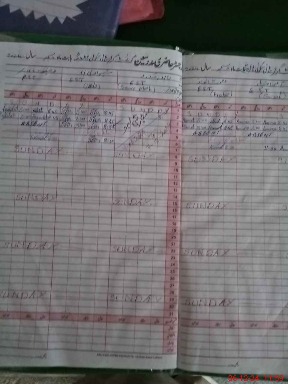 | CNIC | Full Name | Designation | R/C | Absence During Last Calender Month |