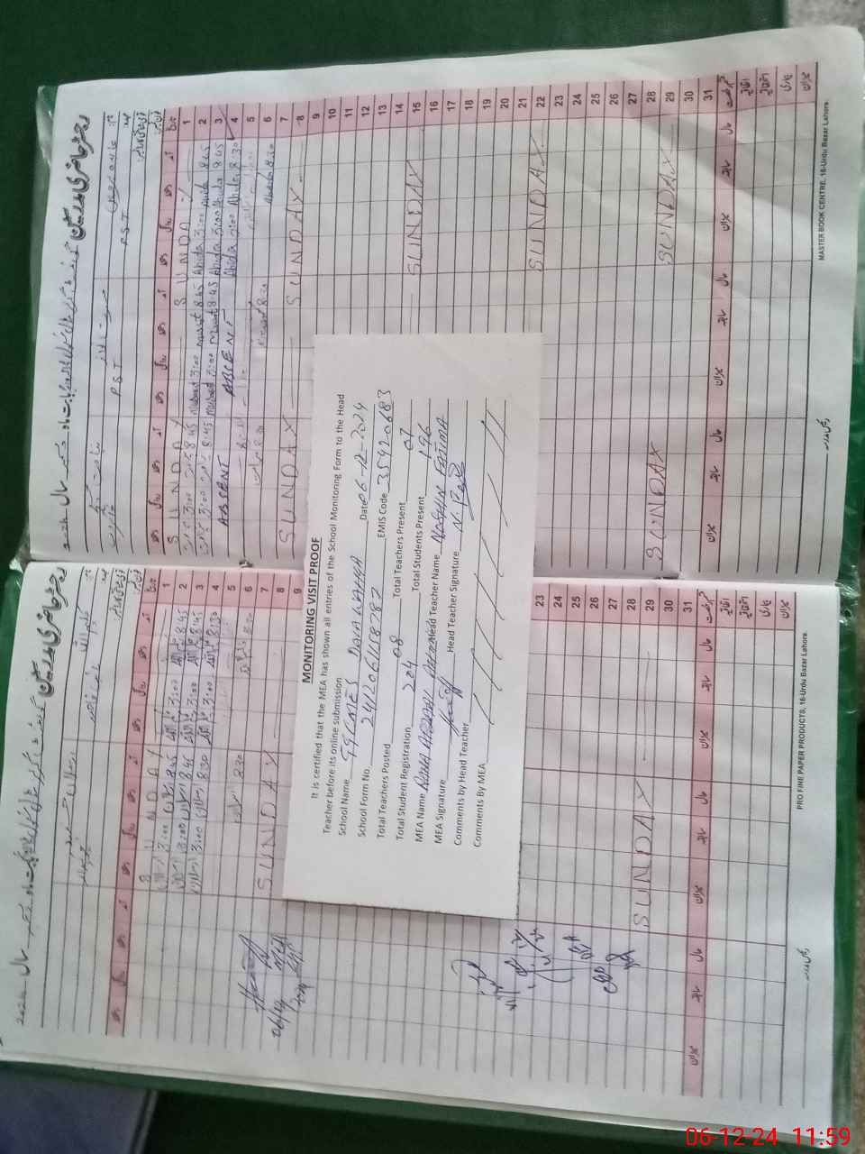 | Attendance Register | Head Teacher | MEA with School | Visit Proof |