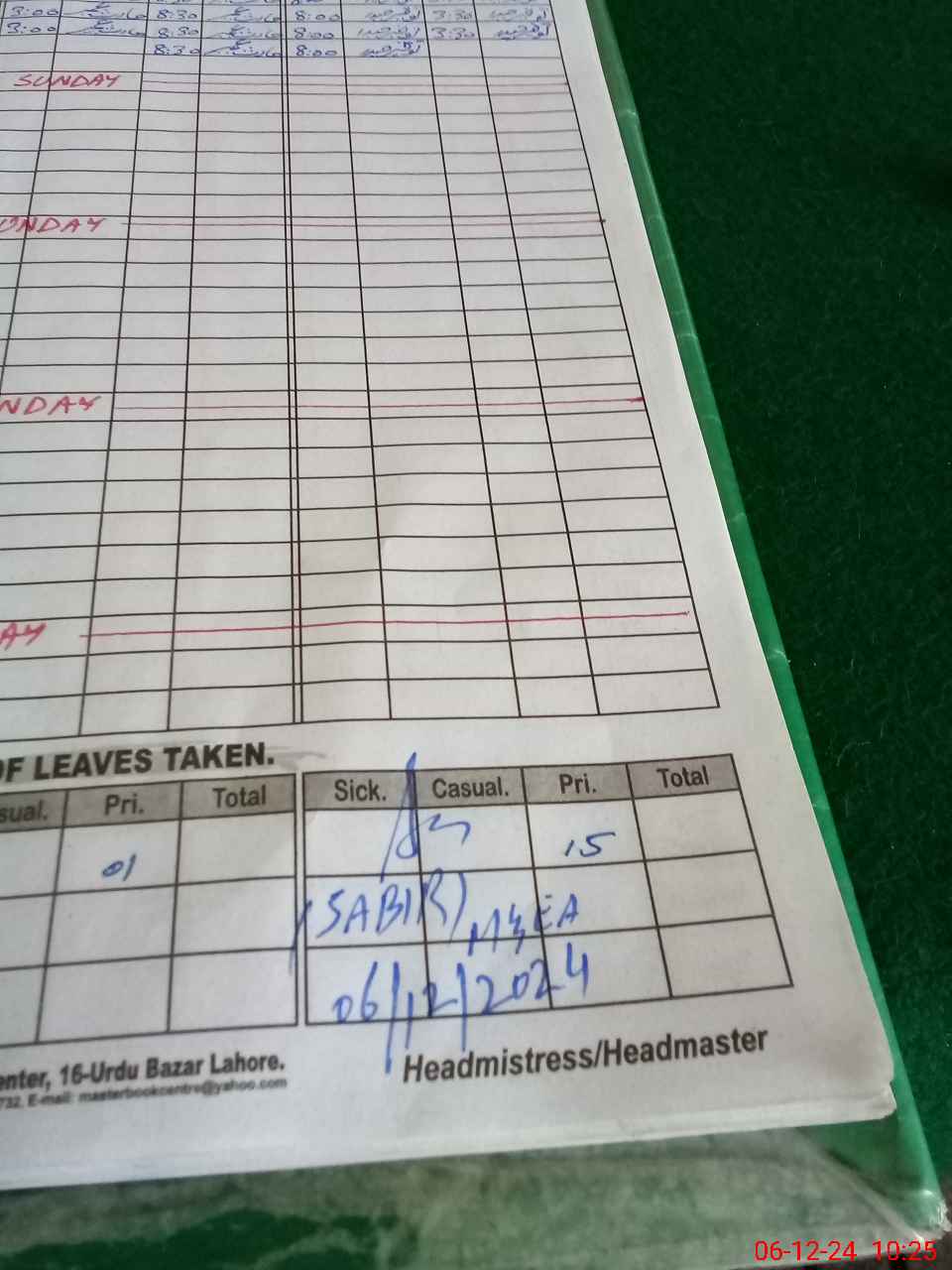 | CNIC | Full Name | Designation | R/C | Absence During Last Calender Month |