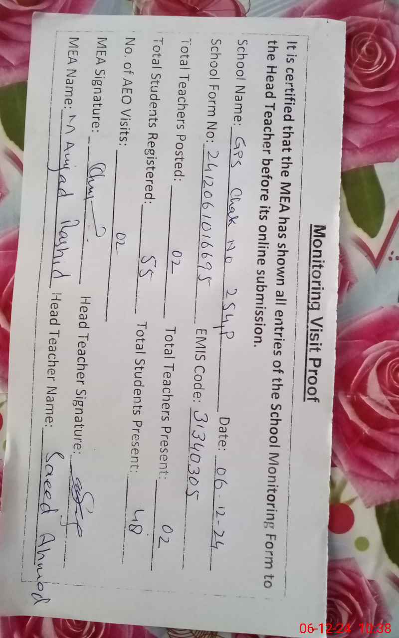 | EMIS Code: 31340305 | Name of School: GPS CHAK NO 254/P | |||