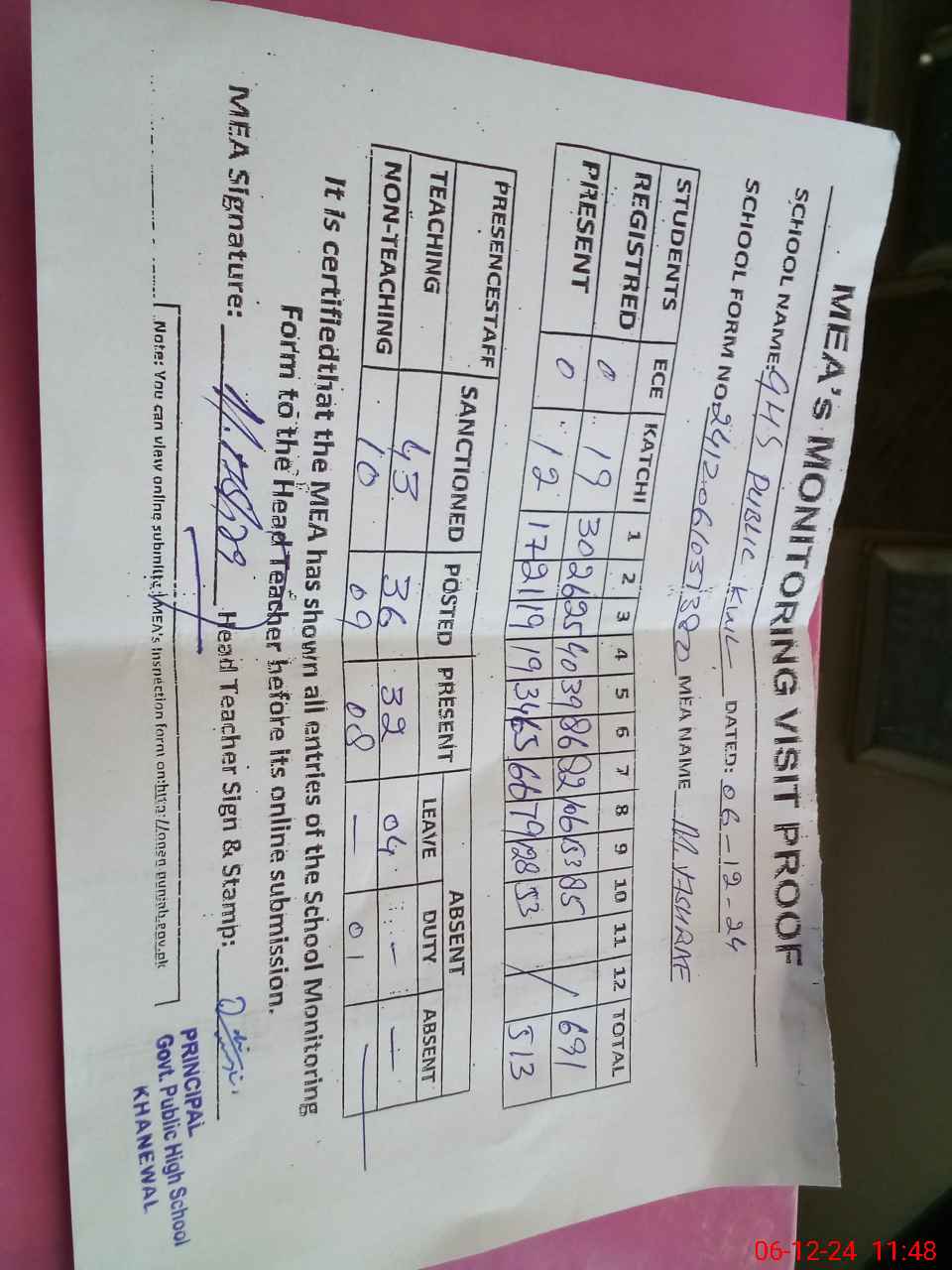 | EMIS Code: 36420004 | Name of School: GHS PUBLIC RAILWAY ROAD, KHANEWAL | |||