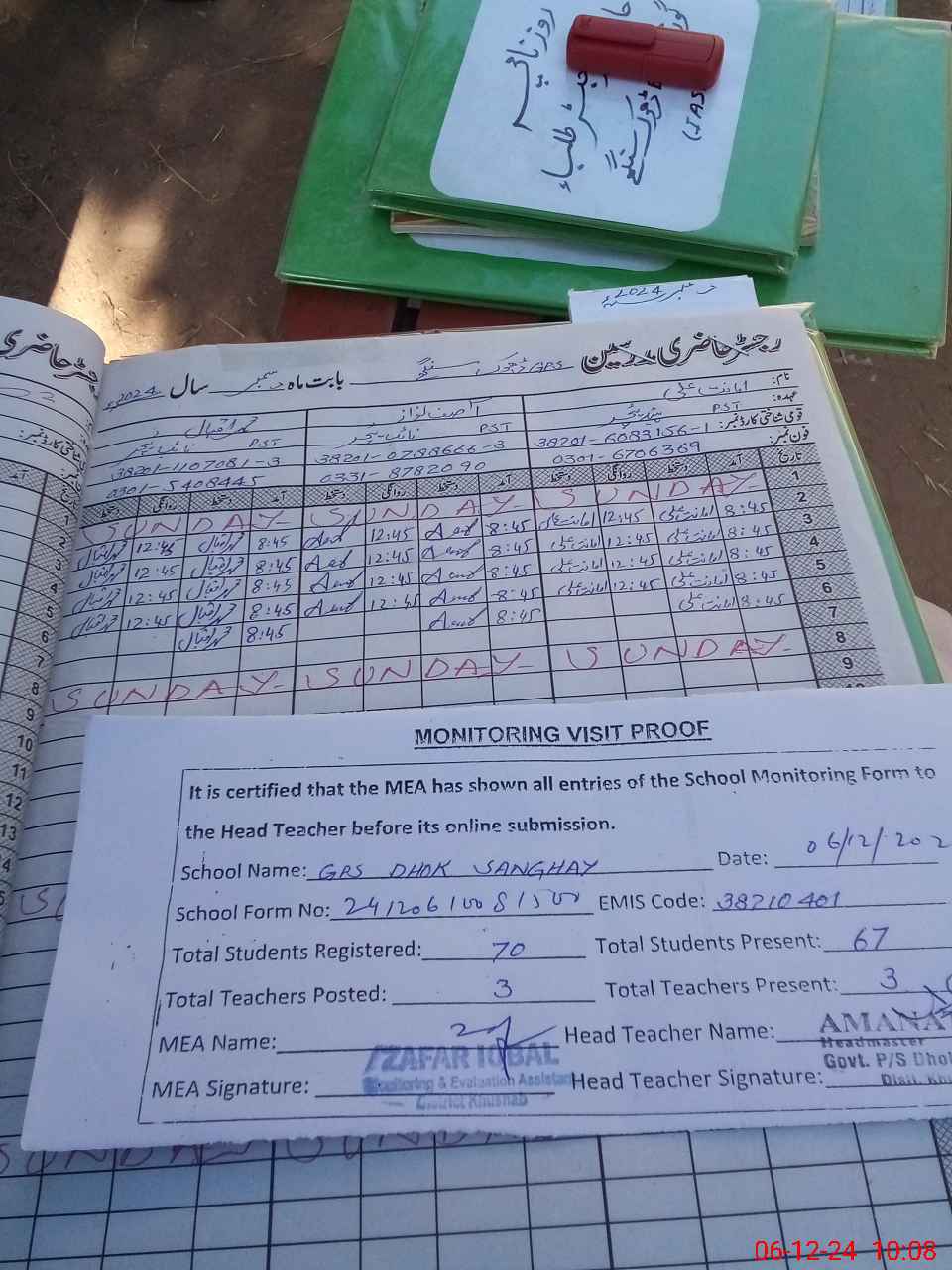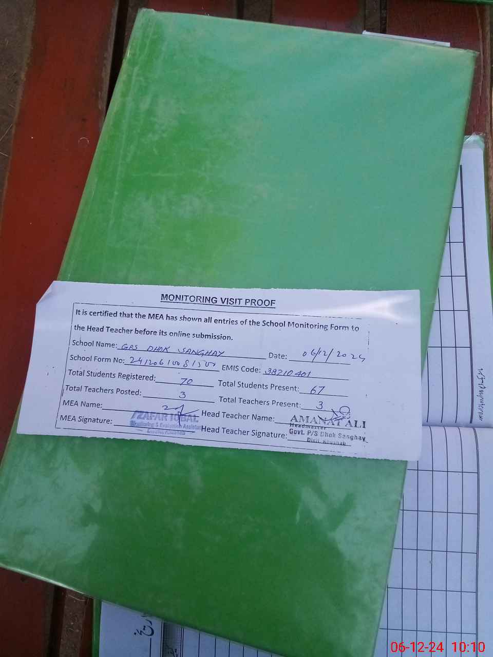 | EMIS Code: 38210401 | Name of School: GPS DHOK SANGHAY | |||