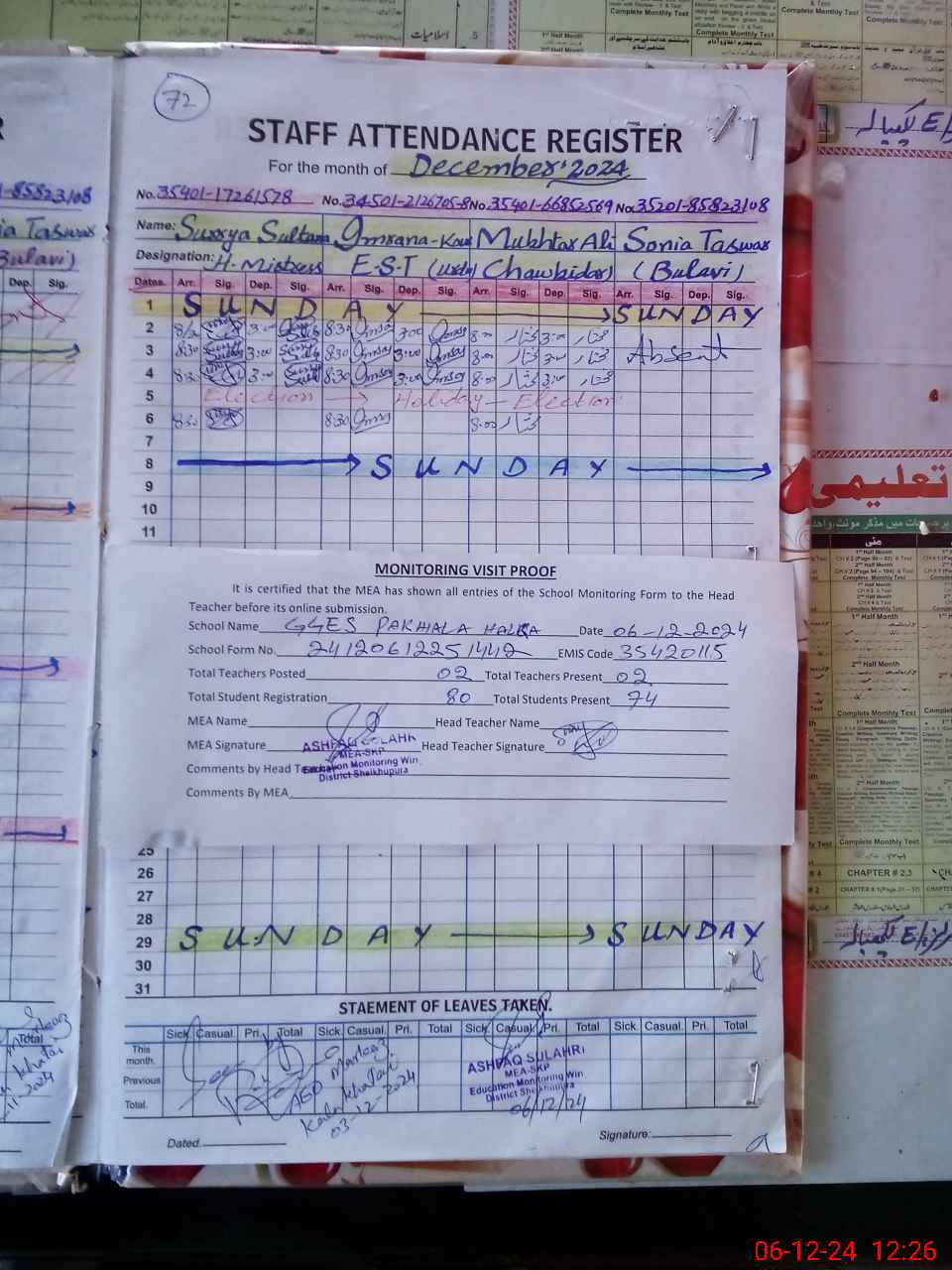 | Attendance Register | Head Teacher | MEA with School | Visit Proof |