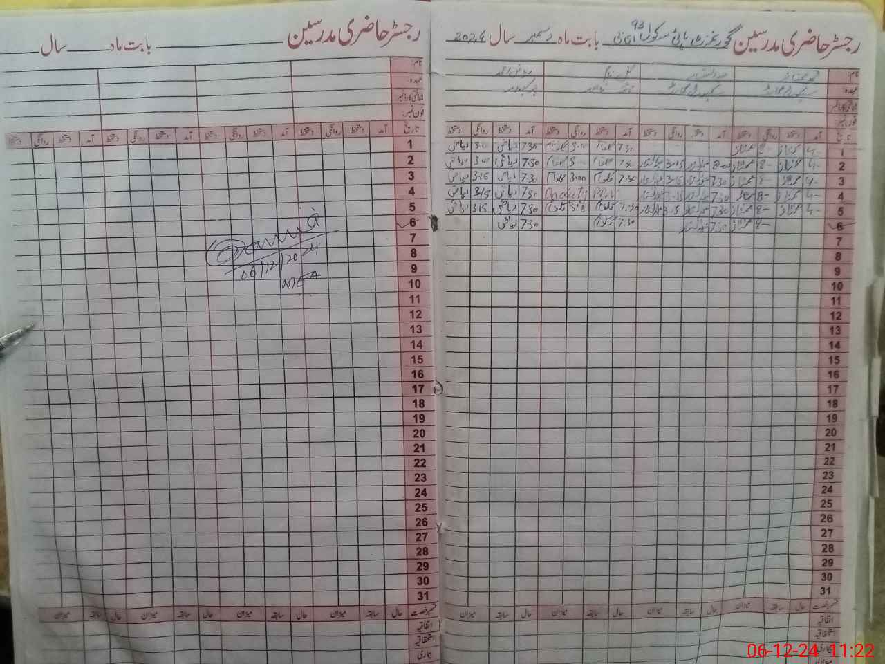 | CNIC | Full Name | Designation | R/C | Absence During Last Calender Month |
