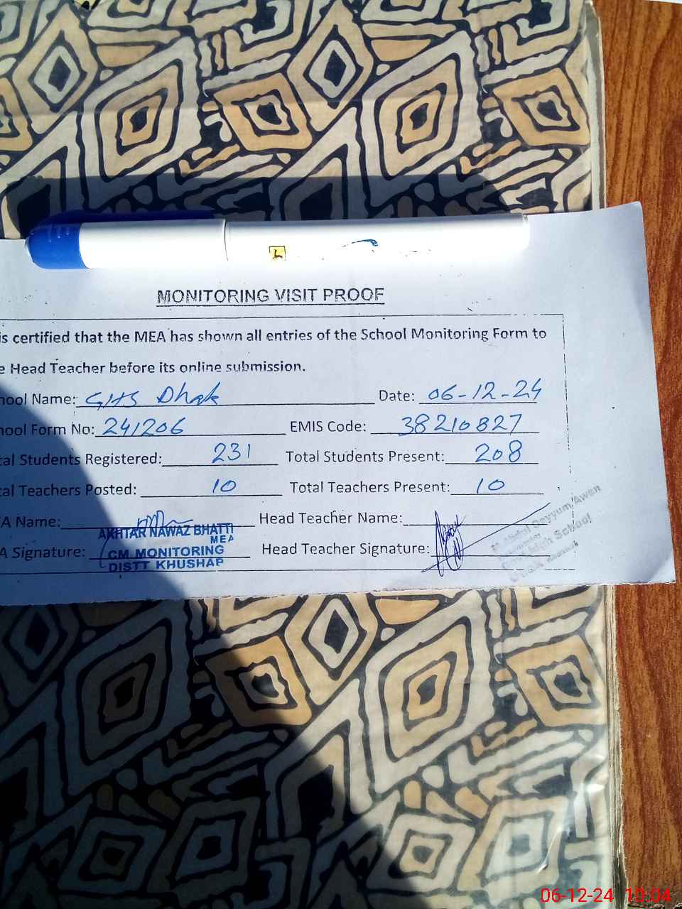 | EMIS Code: 38210827 | Name of School: GHS DHAK | |||