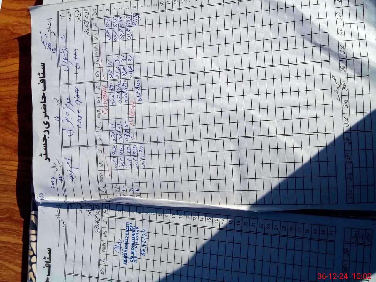 | CNIC | Full Name | Designation | R/C | Absence During Last Calender Month |