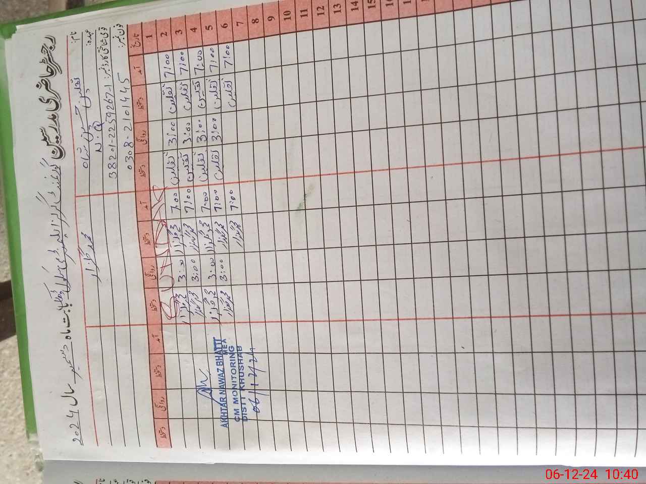 | Monitoring Date: 06-12-2024 | Start Time: 06-12-2024 10:07 AM | End Time: 06-12-2024 10:42 AM | Name of MEA: AK**** NA**** (R**** | |