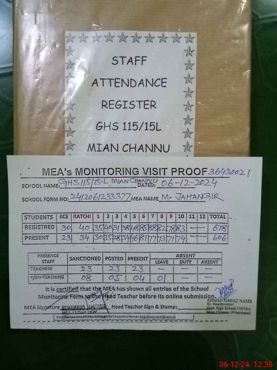 | EMIS Code: 36430021 | Name of School: GHS 115/15-L, MIAN CHANNU | |||