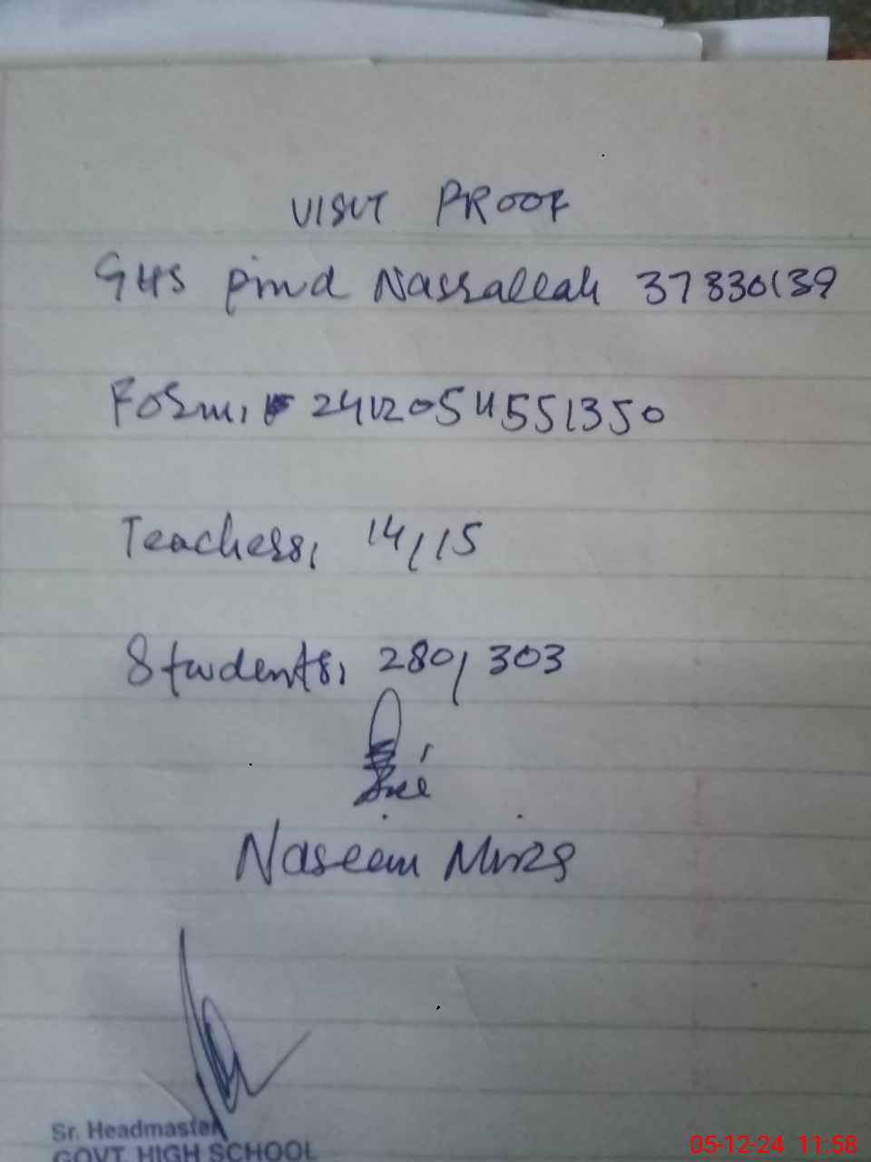 | EMIS Code: 37330139 | Name of School: GHS PIND NASRALA | |||