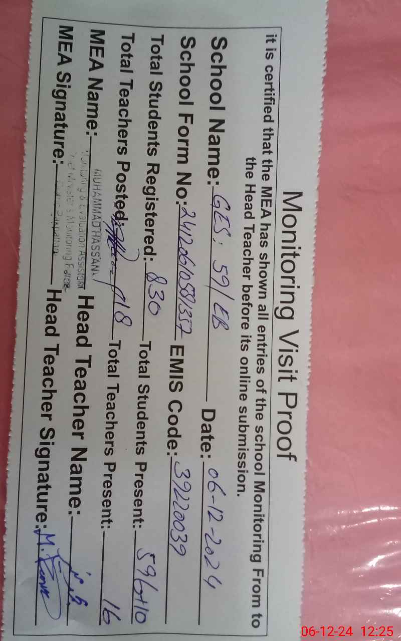 | EMIS Code: 39220039 | Name of School: GES CHAK NO. 59 EB | |||