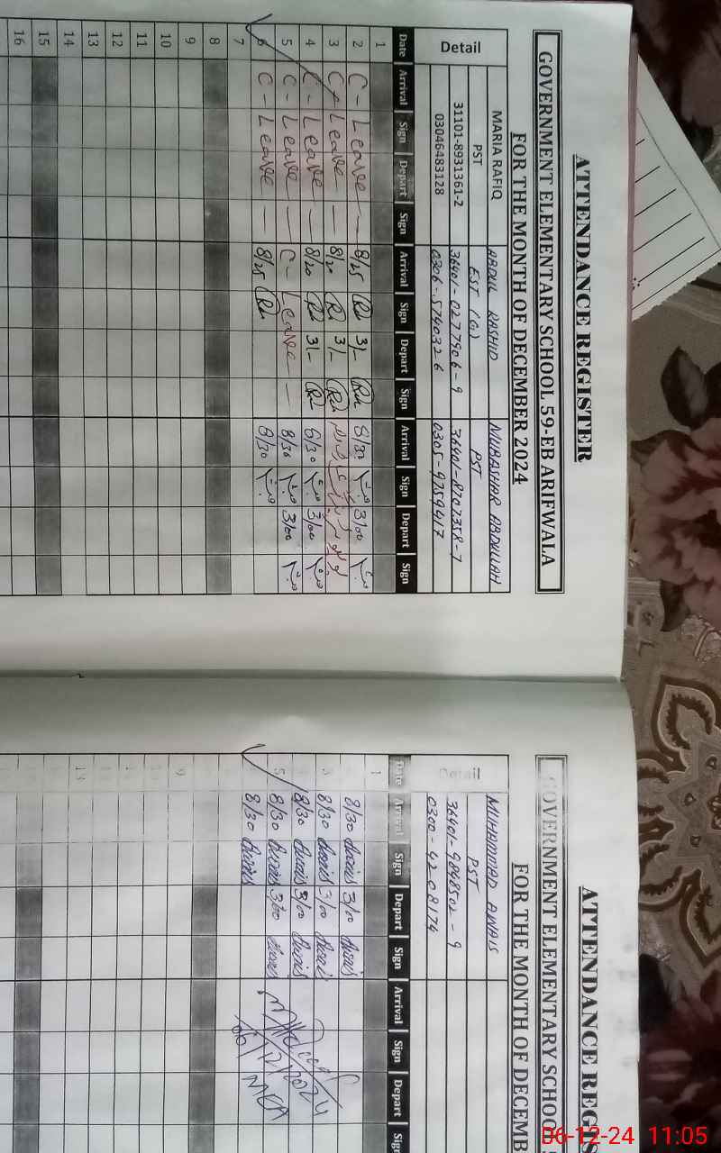 | CNIC | Full Name | Designation | R/C | Absence During Last Calender Month |