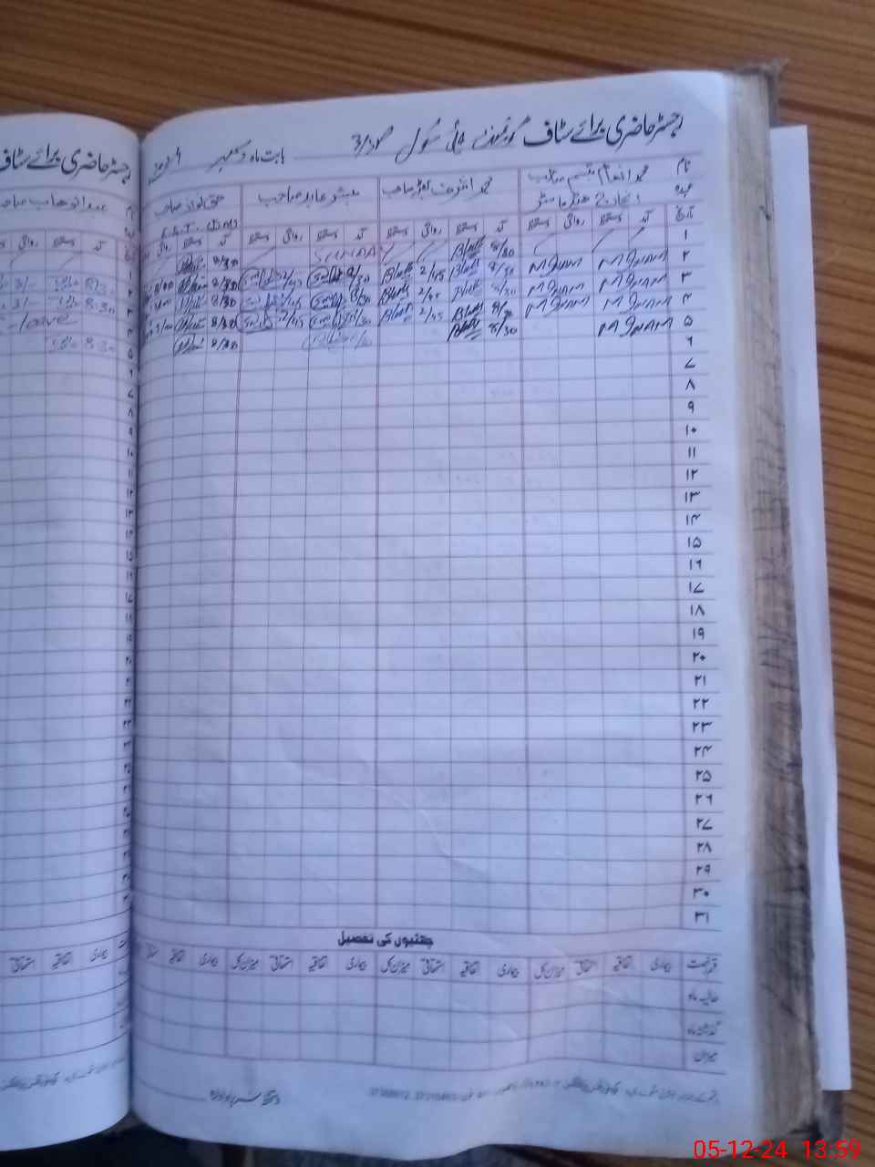 | CNIC | Full Name | Designation | R/C | Absence During Last Calender Month |