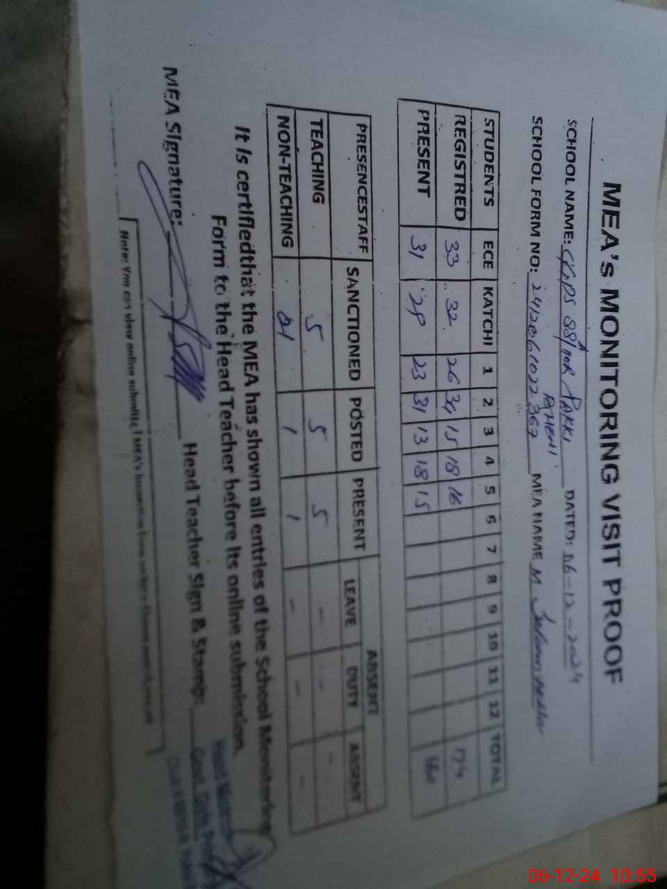 | Certified that this School was Inspected by the Undersigned MEA/DMO Today and the Information Stated Above is as Per Record. | |||||