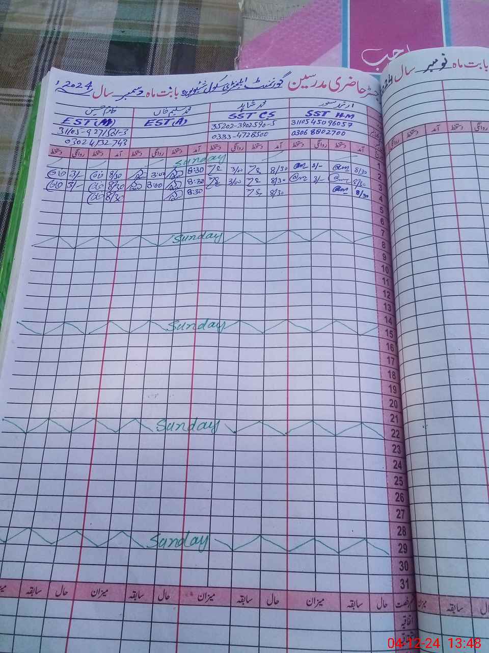 | CNIC | Full Name | Designation | R/C | Absence During Last Calender Month |