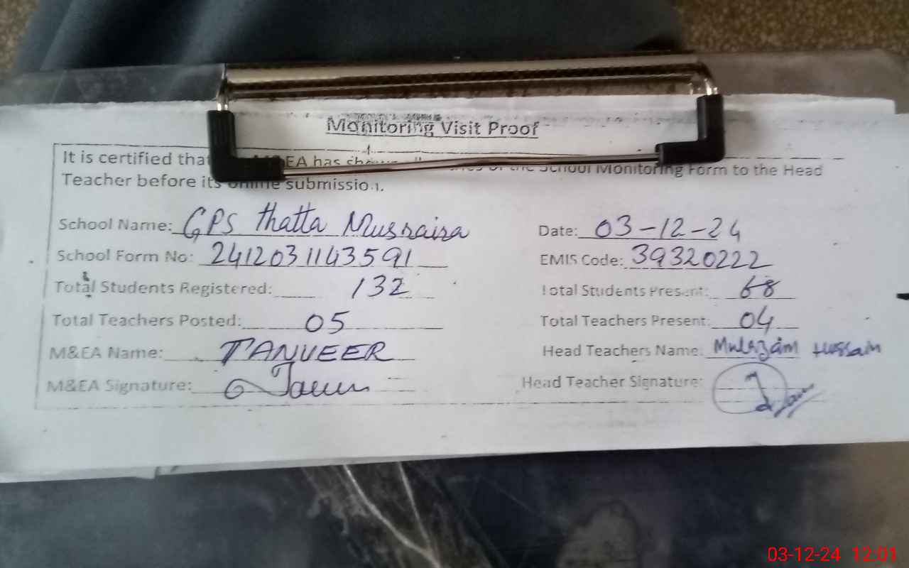 | EMIS Code: 39320222 | Name of School: GPS THATHA MUSRAIRA | |||
