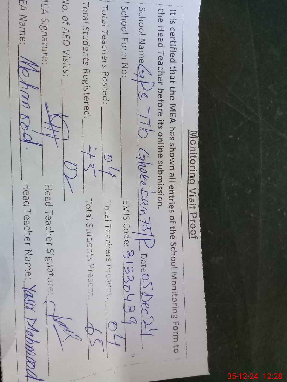 | EMIS Code: 31330439 | Name of School: GPS TIB GHARIBAN CHAK 75/P | |||