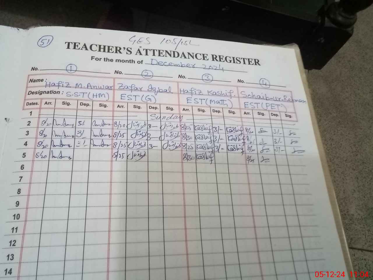 | Monitoring Date: 05-12-2024 | Start Time: 05-12-2024 10:50 AM | End Time: 05-12-2024 11:17 AM | Name of MEA: MU**** SH**** | |