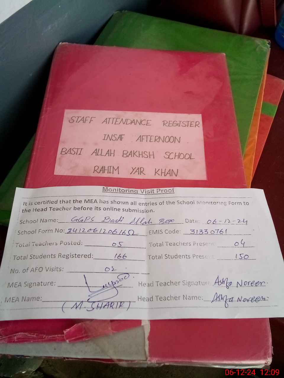 | EMIS Code: 31330761 | Name of School: GGPS BASTI ALLAH BAKSH | |||