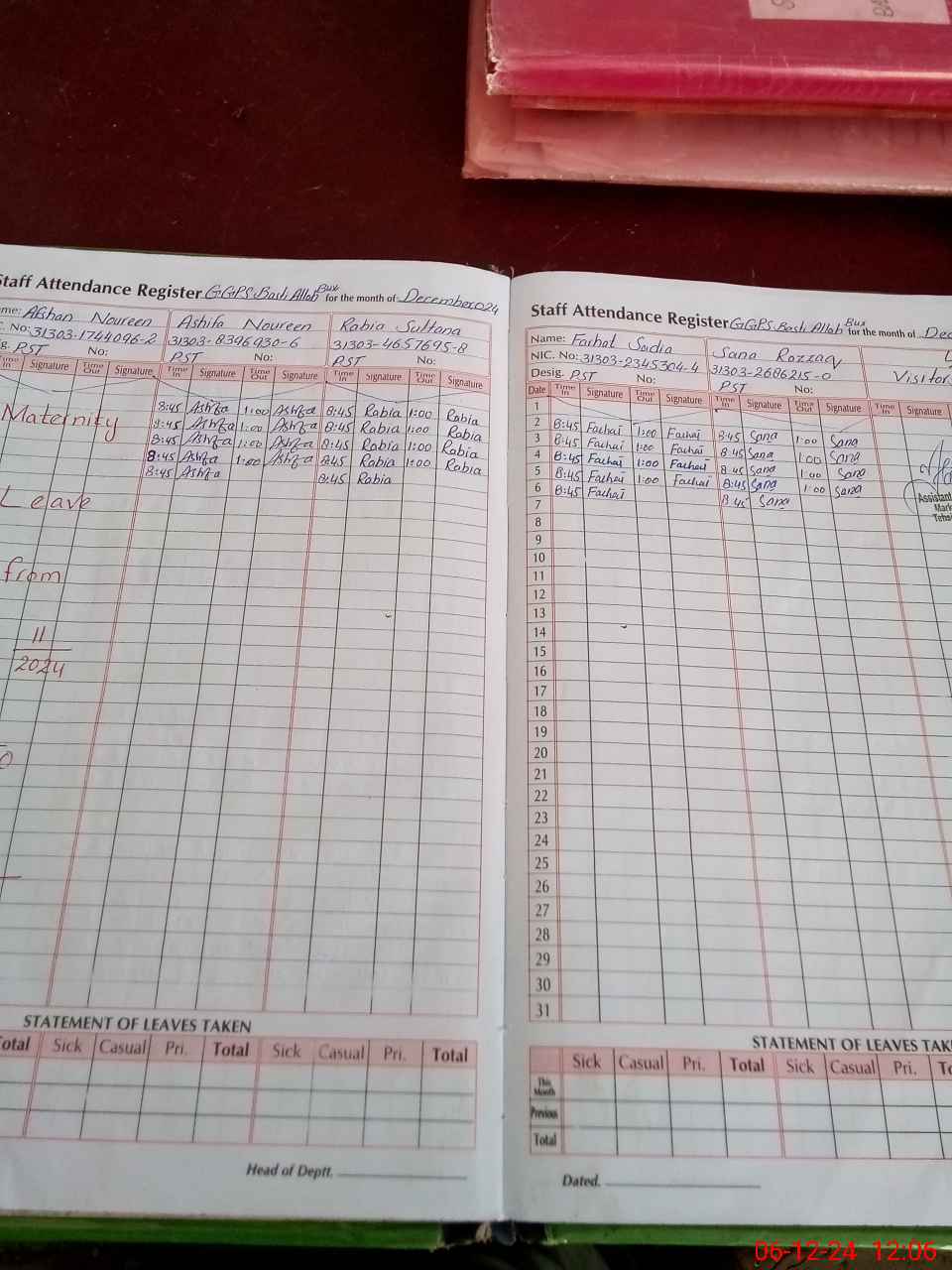 | Leave | Duty | Absent | Maternity | Medical | Ex- Pak |