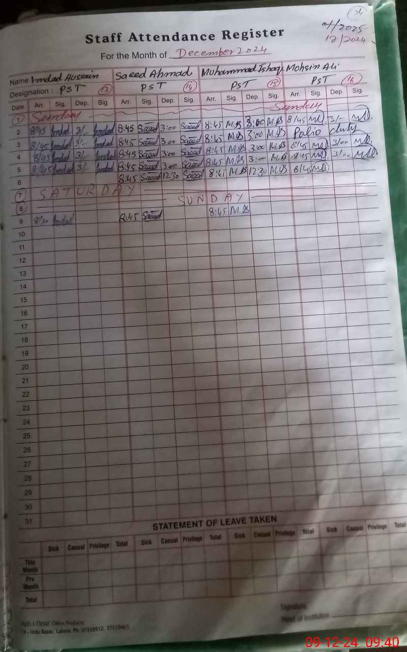 | EMIS Code: 31340012 | Name of School: GHS RAHEEM ABAD | |||