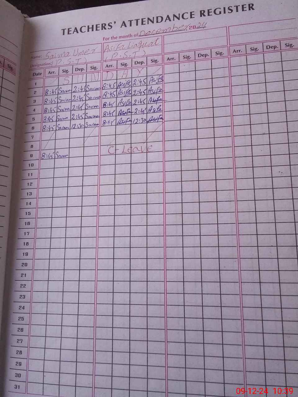 | CNIC | Full Name | Designation | R/C | Absence During Last Calender Month |