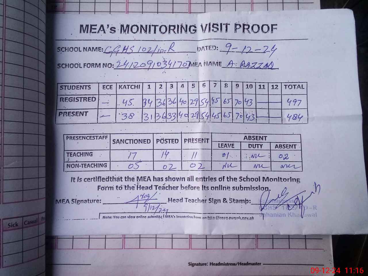 | EMIS Code: 36440138 | Name of School: GGHS 102/10-R, JAHANIAN | |||