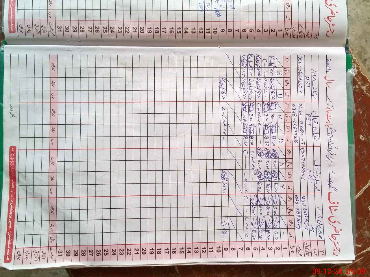 | CNIC | Full Name | Designation | R/C | Absence During Last Calender Month |