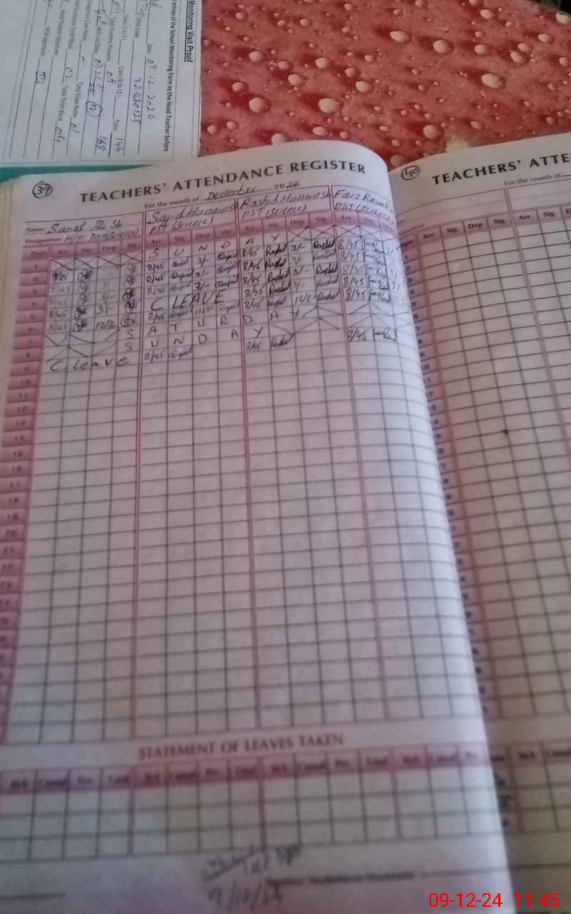 | Attendance Register | Head Teacher | MEA with School | Visit Proof |