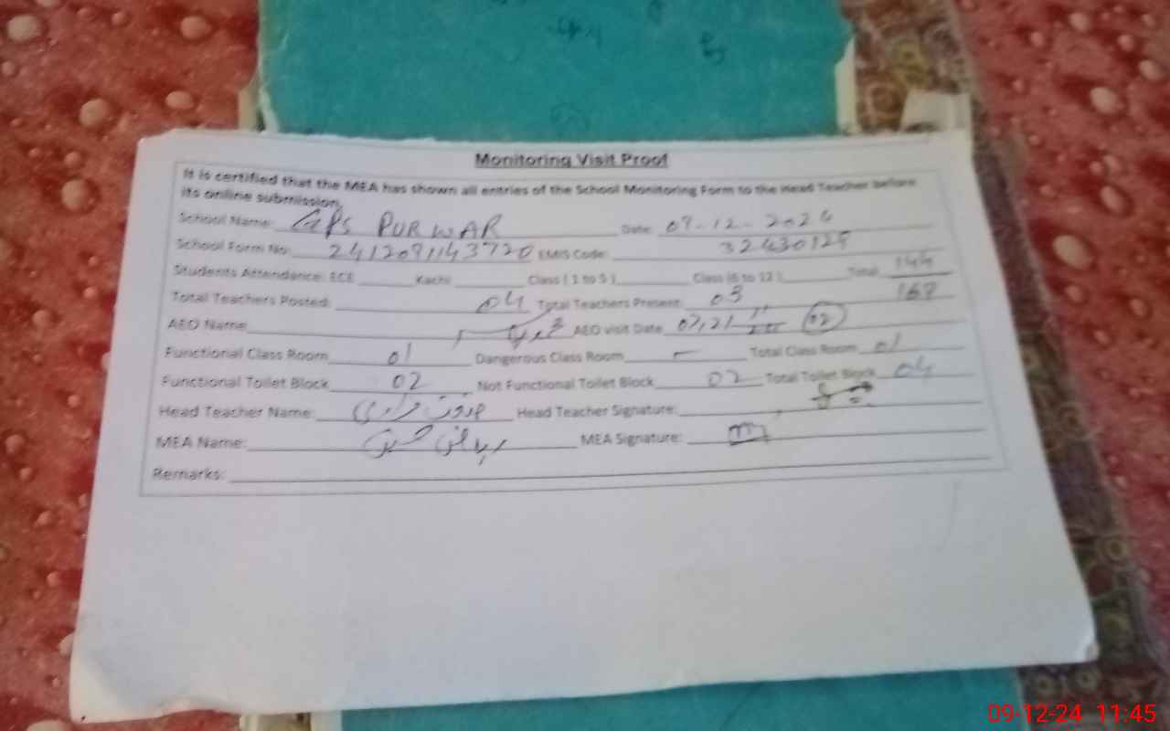 | EMIS Code: 32430129 | Name of School: GPS PURY WAR | |||