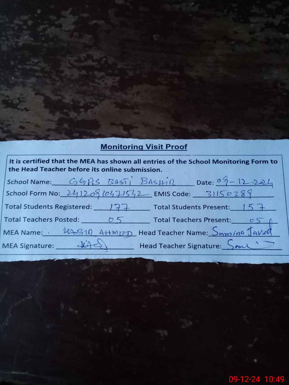 | EMIS Code: 31150389 | Name of School: GGPS BASTI BASHIR | |||