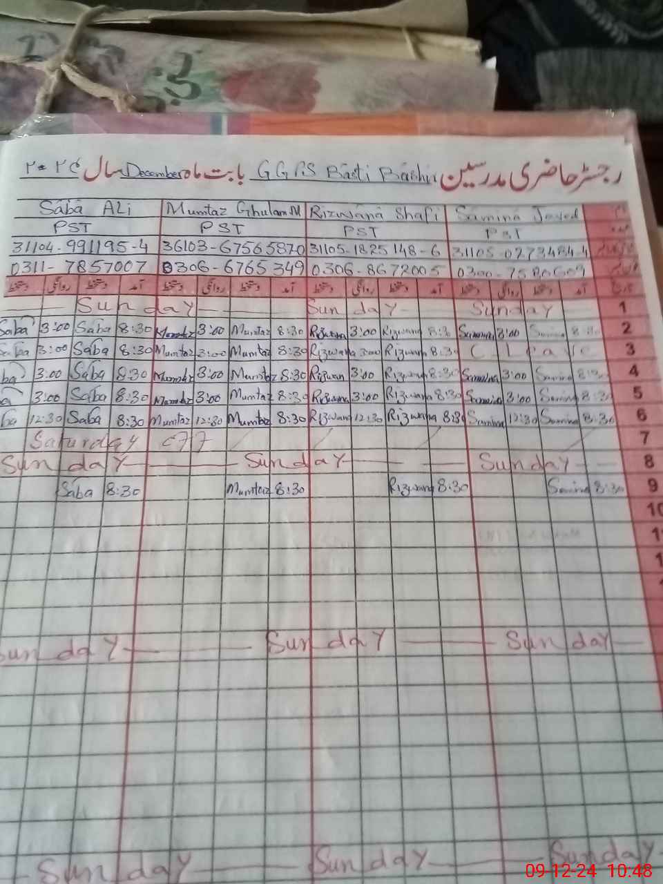 | Name: Mu**** Gh**** M Designation: (School Headmaster's/Headmistress's) P S T Phone/Cell Number: 03**** |
