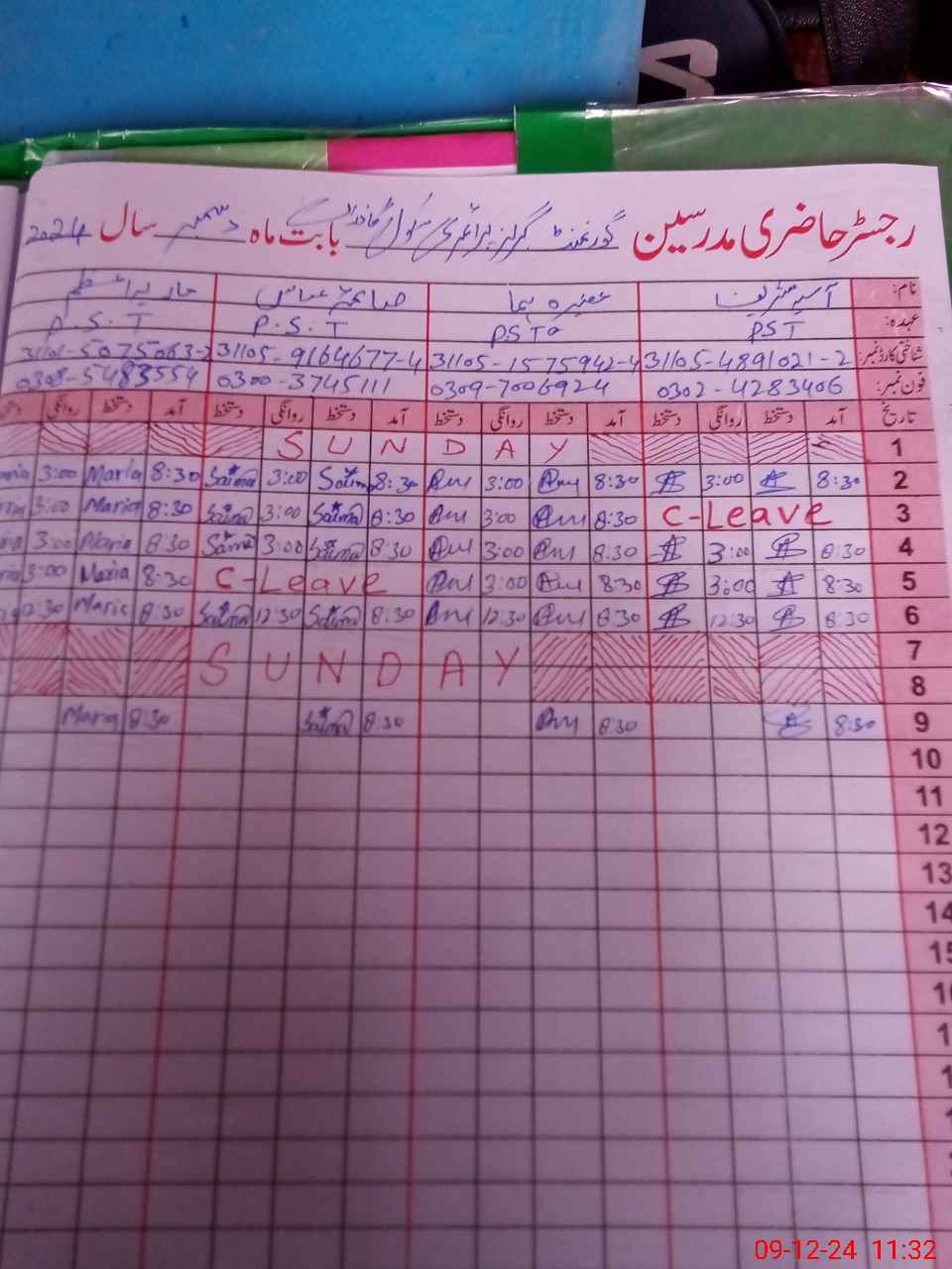 | CNIC | Full Name | Designation | R/C | Absence During Last Calender Month |