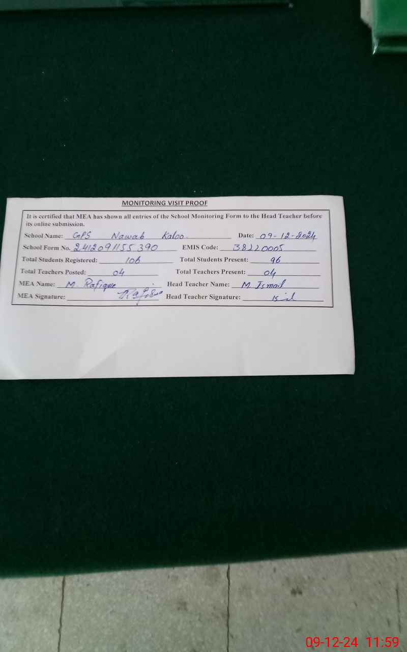 | EMIS Code: 38220005 | Name of School: GPS DERA NAWAB KALOO | |||