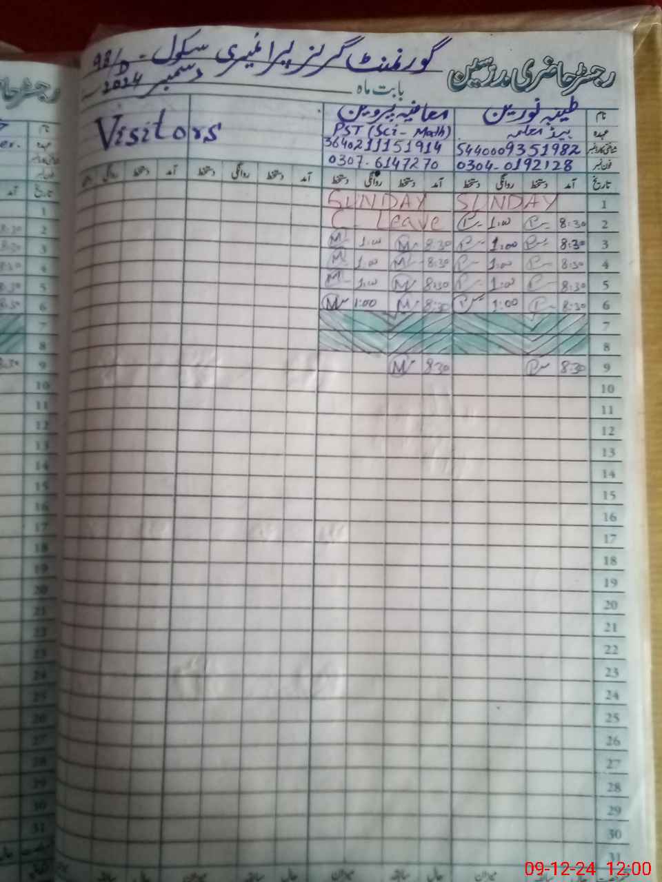 | Name: Mu**** Pe**** Designation: (School Headmaster's/Headmistress's) PST Phone/Cell Number: 03**** |