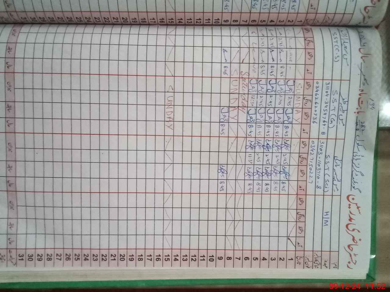 | CNIC | Full Name | Designation | R/C | Absence During Last Calender Month |