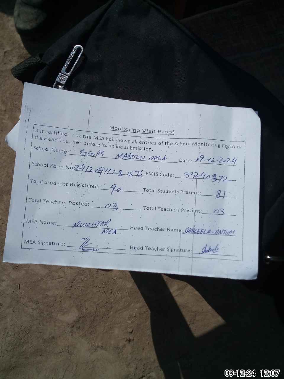 | EMIS Code: 33240372 | Name of School: GGPS MASSOW WALA | |||