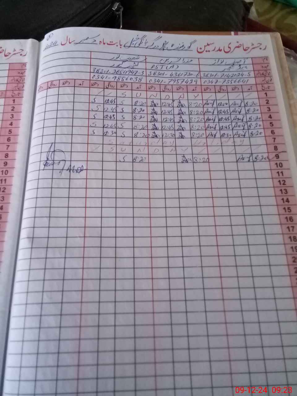 | CNIC | Full Name | Designation | R/C | Absence During Last Calender Month |