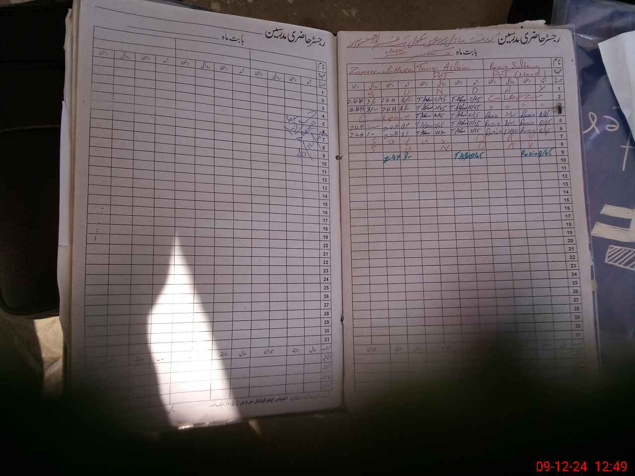 | CNIC | Full Name | Designation | R/C | Absence During Last Calender Month |