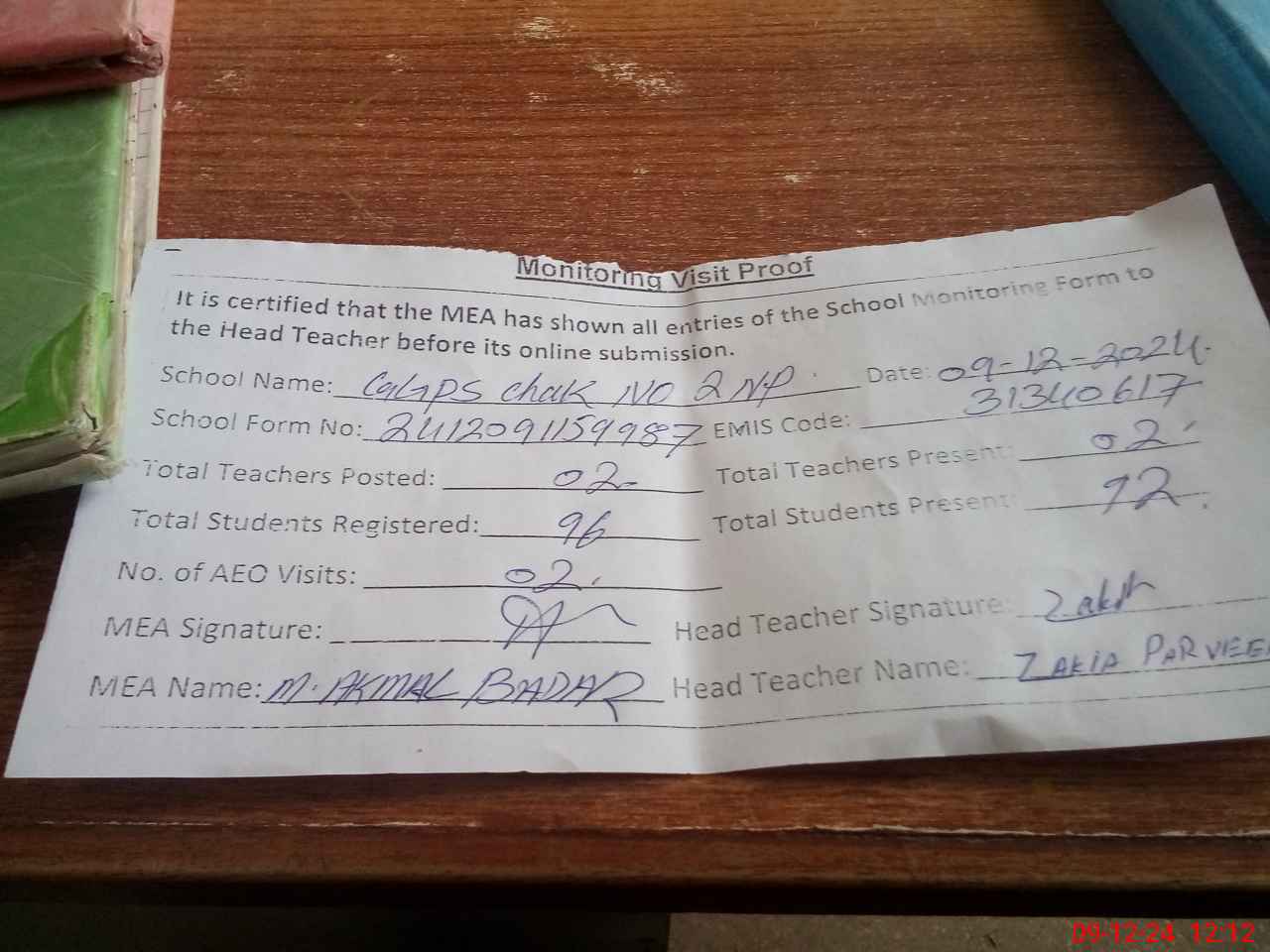 | EMIS Code: 31340617 | Name of School: GGPS CHAK NO.2/NP | |||