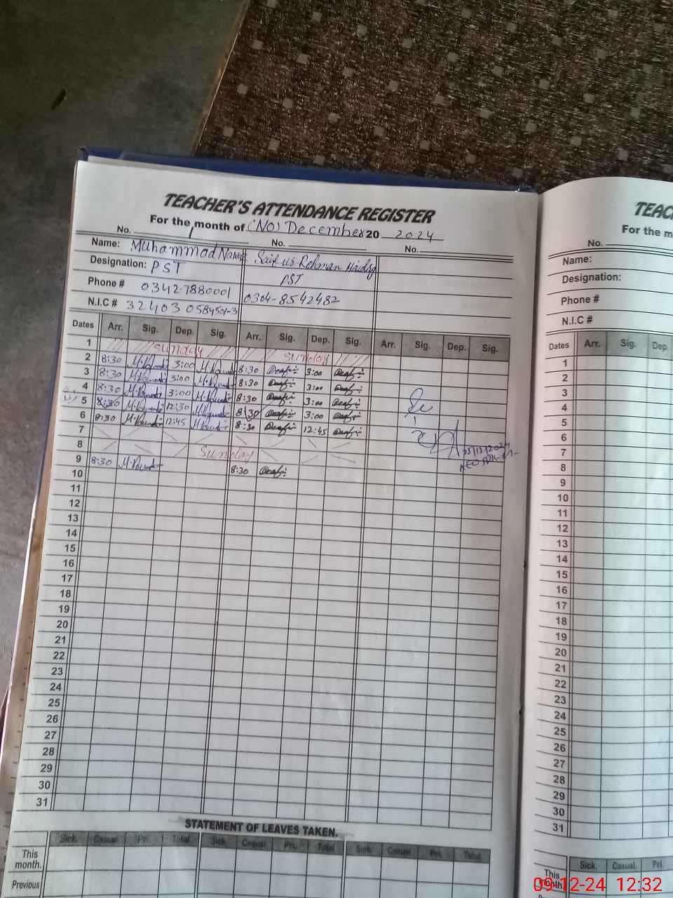 | Name: Wa**** Ab**** Designation: (School Headmaster's/Headmistress's) PST Phone/Cell Number: 03**** |