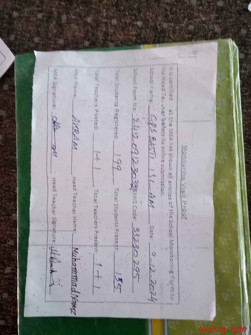 | EMIS Code: 33230295 | Name of School: GPS BASTI ISLAM | |||