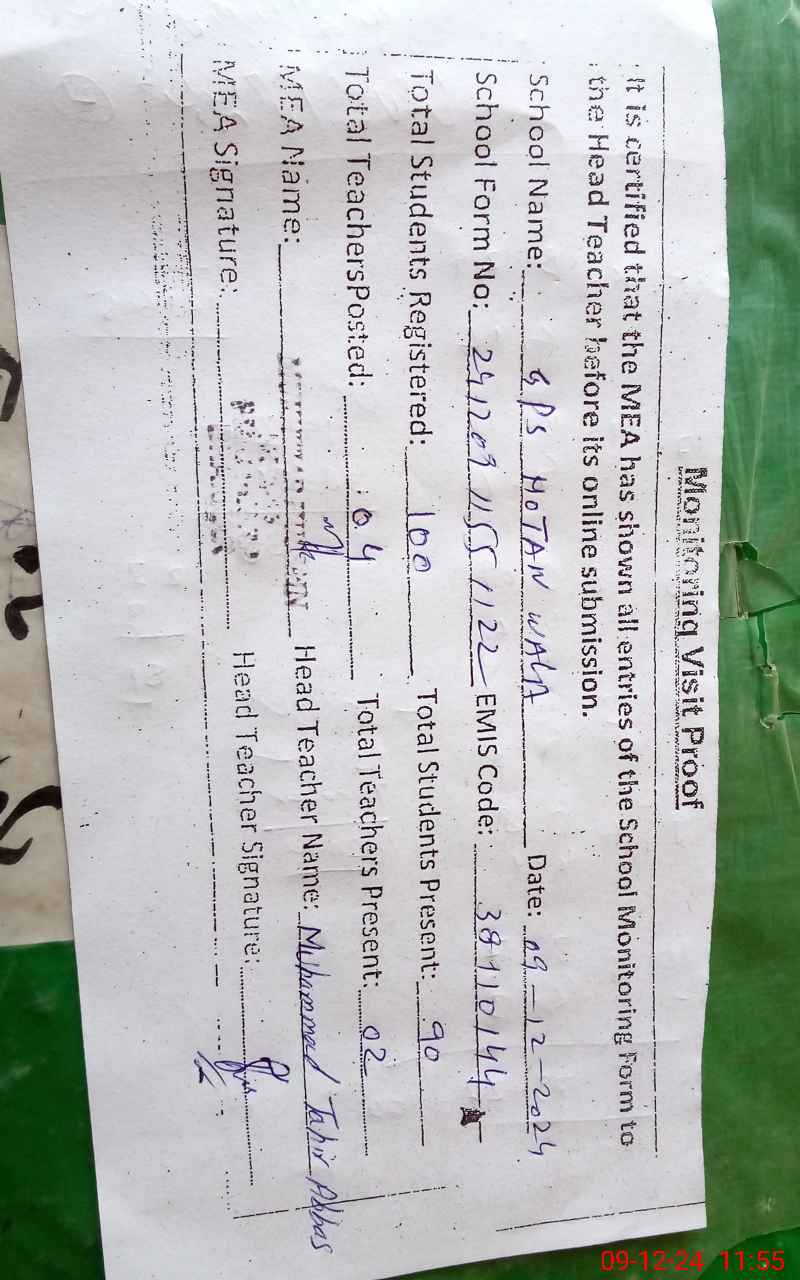 | EMIS Code: 38110144 | Name of School: GPS HOTAN WALA | |||