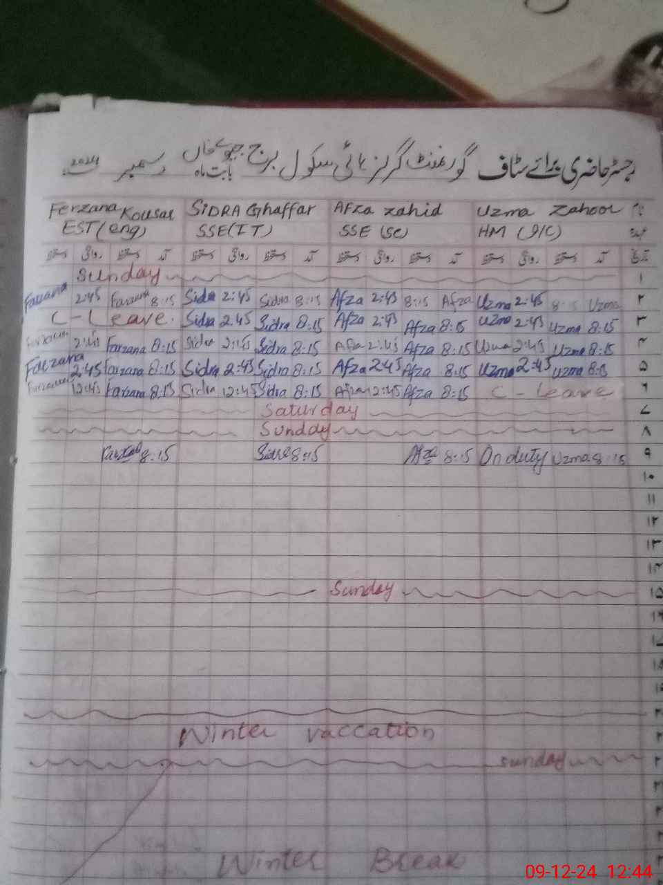 | Name: Uz**** Za**** Designation: (School Headmaster's/Headmistress's) SSE Phone/Cell Number: 03**** |