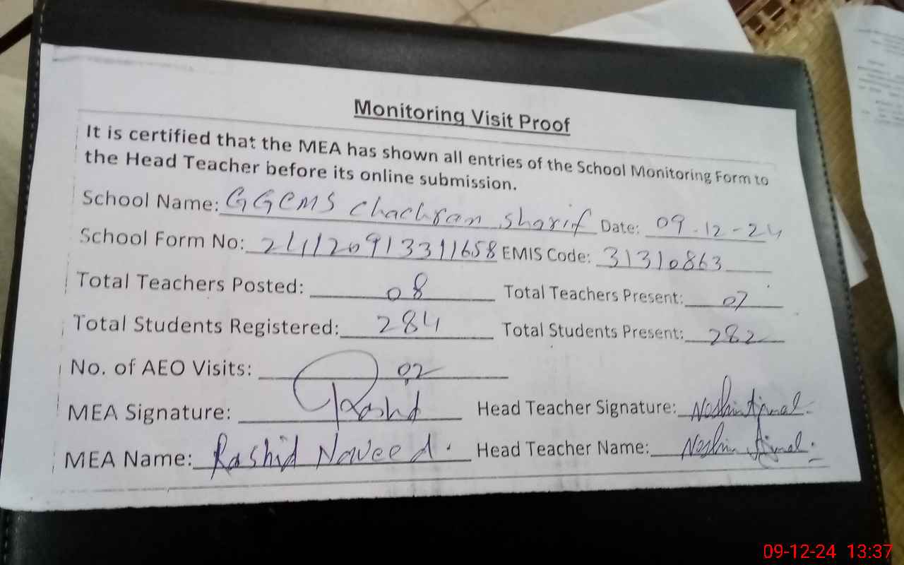 | EMIS Code: 31310863 | Name of School: GGCMS CHACHARAN SHARIF | |||