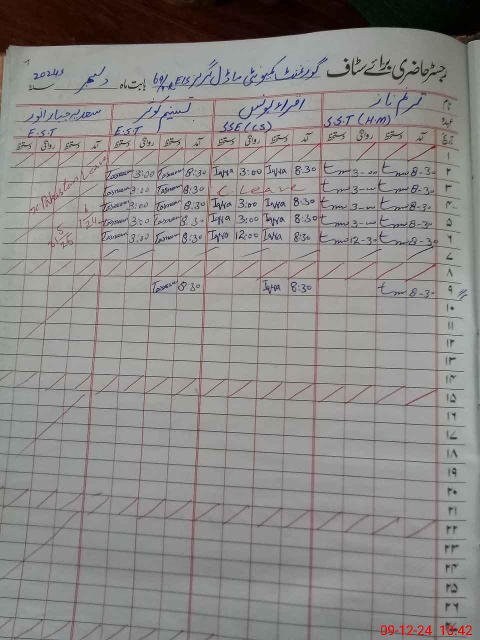 | CNIC | Full Name | Designation | R/C | Absence During Last Calender Month |