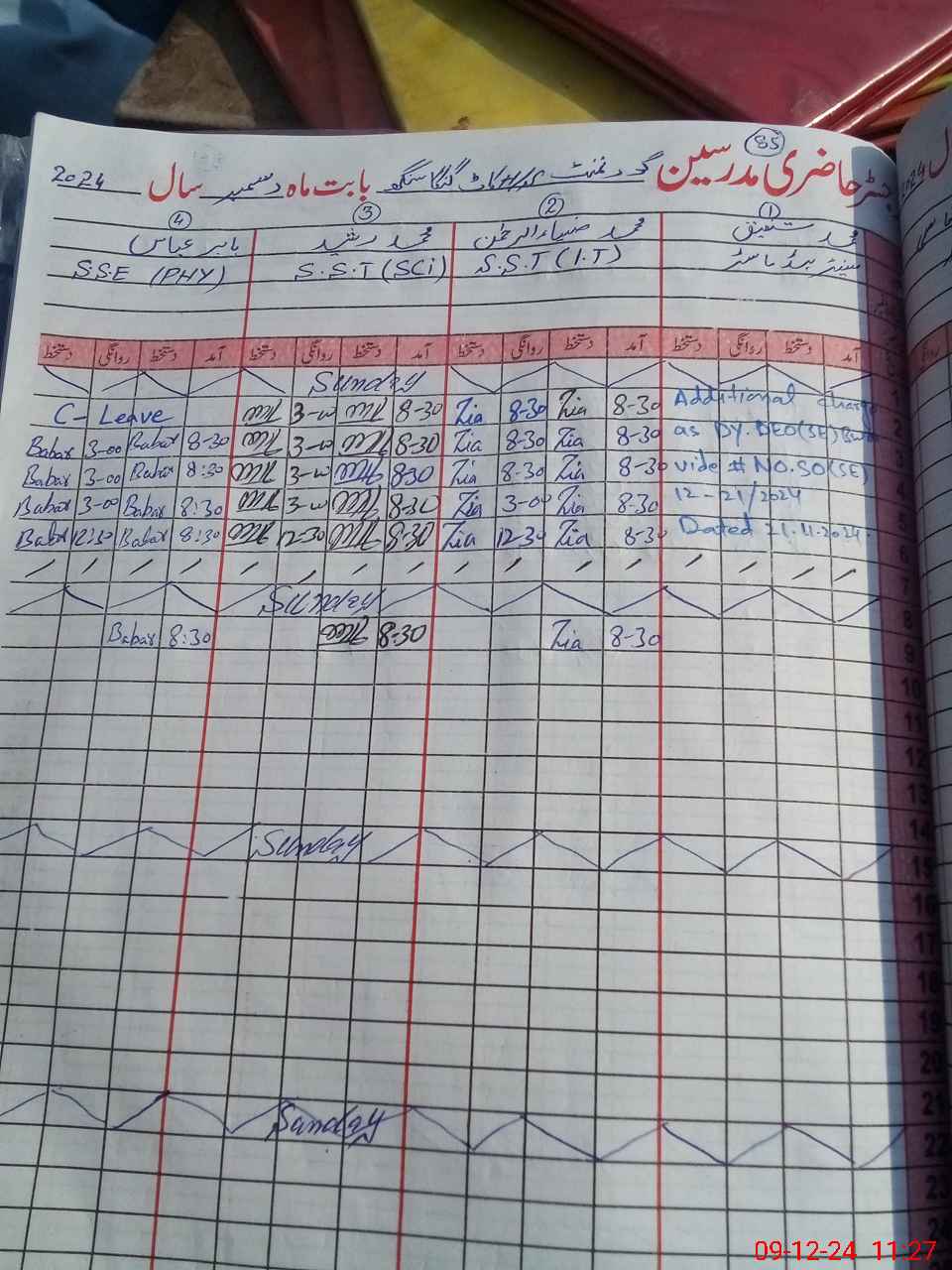 | CNIC | Full Name | Designation | R/C | Absence During Last Calender Month |