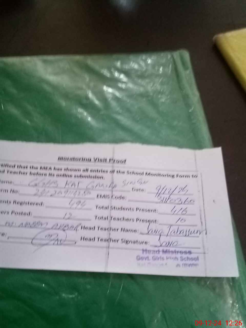 | EMIS Code: 31110360 | Name of School: GGHS KAT GANGA SINGH | |||