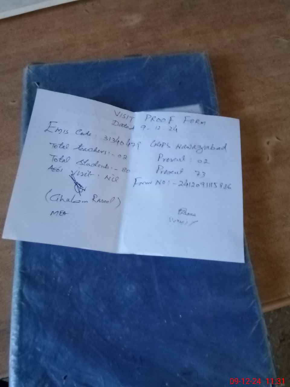 | Attendance Register | Head Teacher | MEA with School | Visit Proof |
