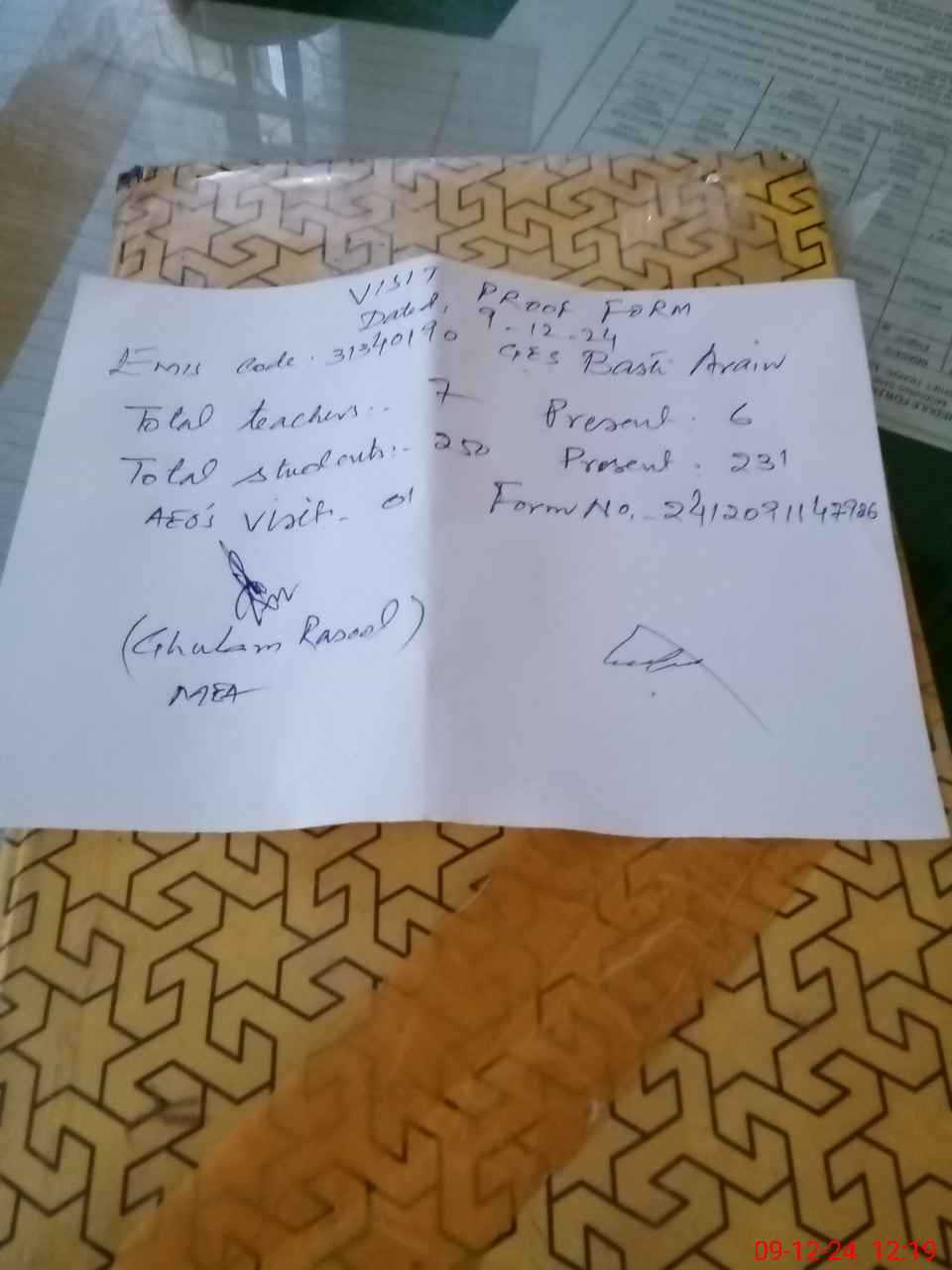 | EMIS Code: 31340190 | Name of School: GES BASTI ARAIN | |||